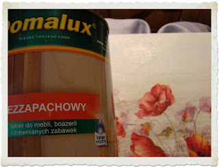 * Następnie zabezpieczmy lakierem, ale pędzel nie może być zbyt mokry serwetka się podniesie i zmarszczy jeszcze bardziej. Najlepiej by pędzel był półsuchy. Tę czynność powtarzamy 2-3 krotnie aż serwetka będzie dokładnie zabezpieczona.